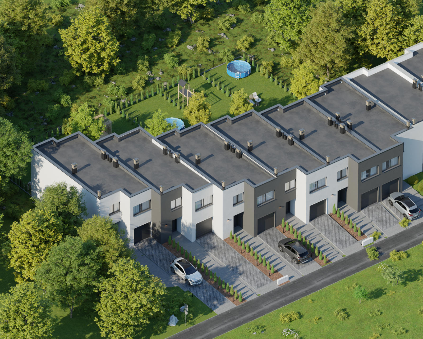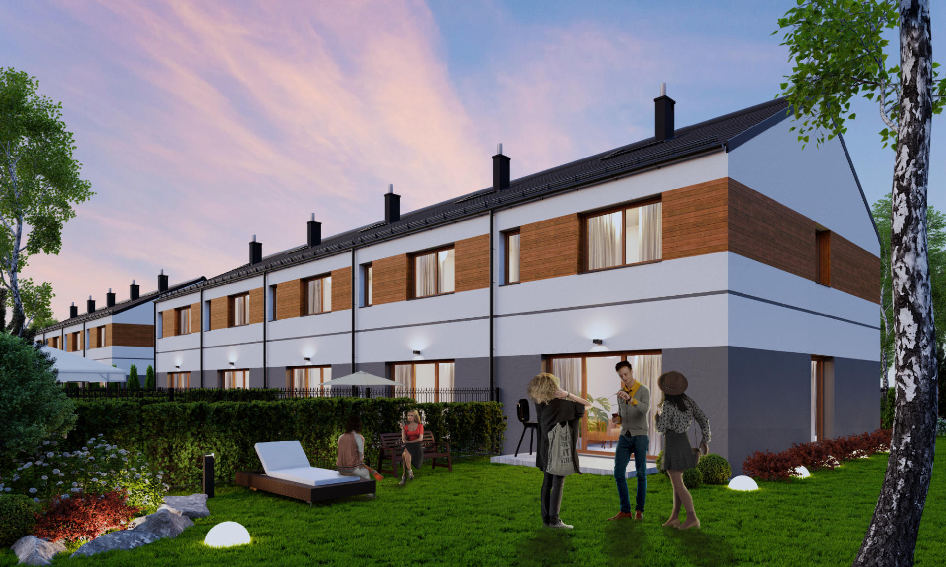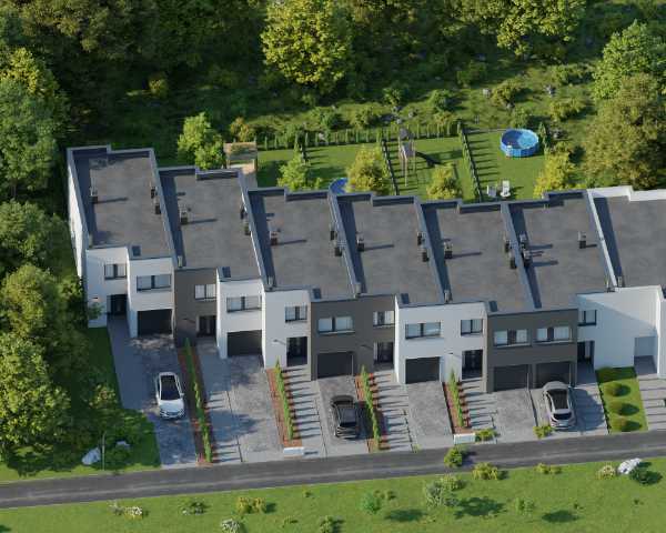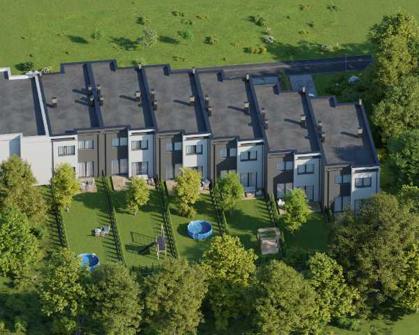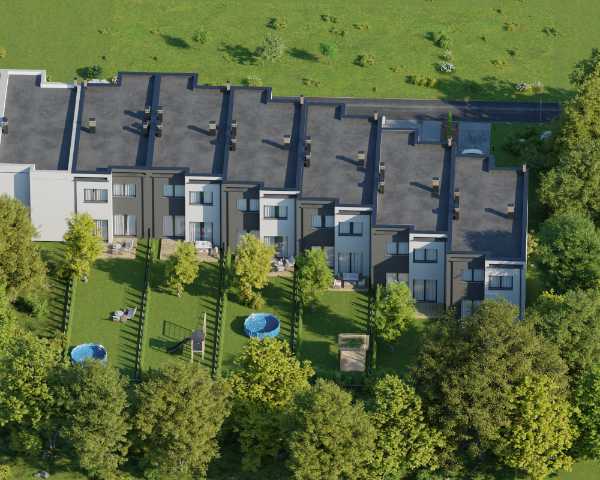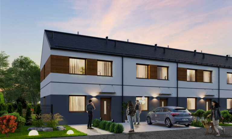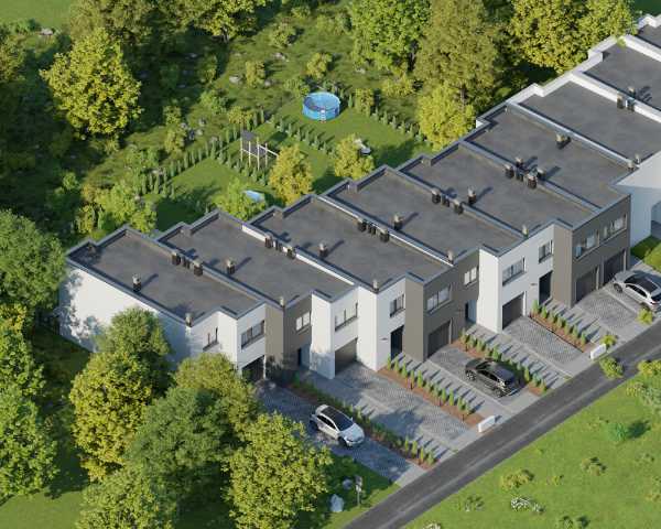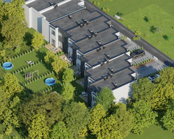 Domy wykonano w nowoczesnym stylu ze sprawdzonych materiałów budowlanych. Charakteryzują się bardzo dobrymi parametrami termoizolacji. Są oddawane w podwyższonym standardzie deweloperskim, który obejmuje: ogrzewanie podłogowe we wszystkich pomieszczeniach, okna trzyszybowe i skrzynki na rolety na parterze. Dzięki dużym oknom, wnętrza są pełne naturalnego światła. Do każdego domu przynależy indywidualny ogródek, w którym możesz odpocząć na świeżym powietrzu.