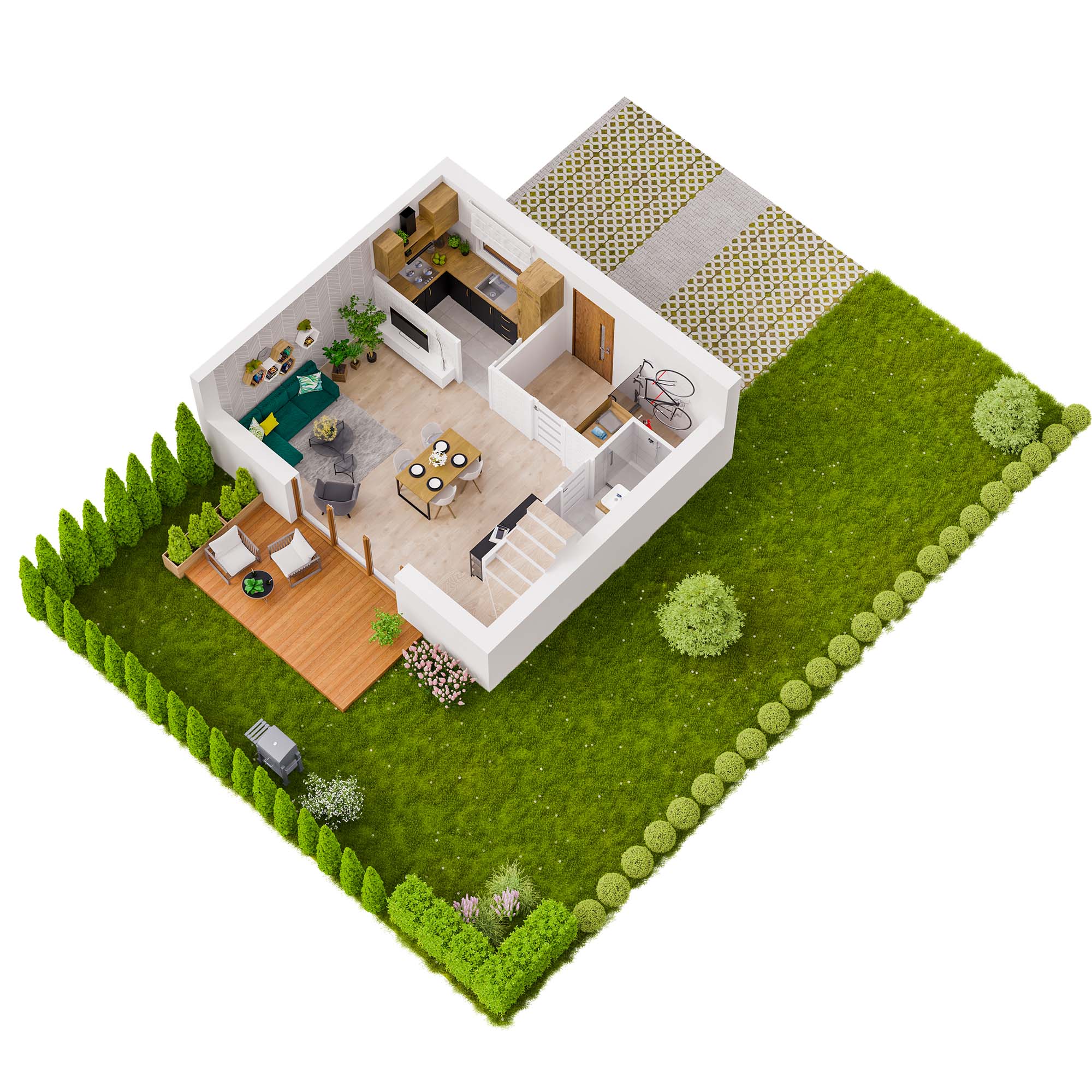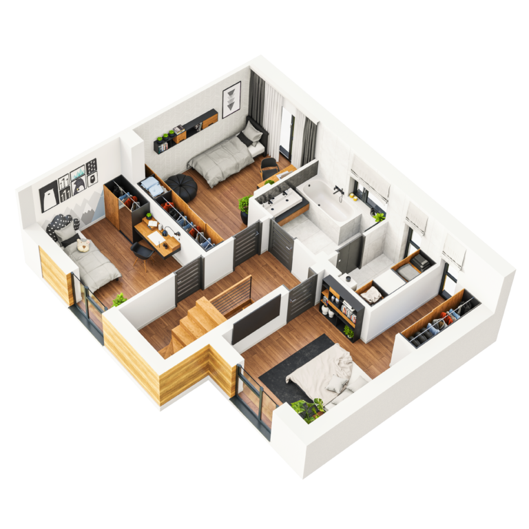 Bez trudu znajdziesz przestrzeń do aranżacji dziecięcego pokoju, gabinetu do pracy czy komfortowej sypialni. Spotkania z bliskimi zorganizujesz w przestronnym salonie z wyjściem do ogródka. Nigdy nie zabraknie Ci również miejsca do przechowywania domowego wyposażenia.